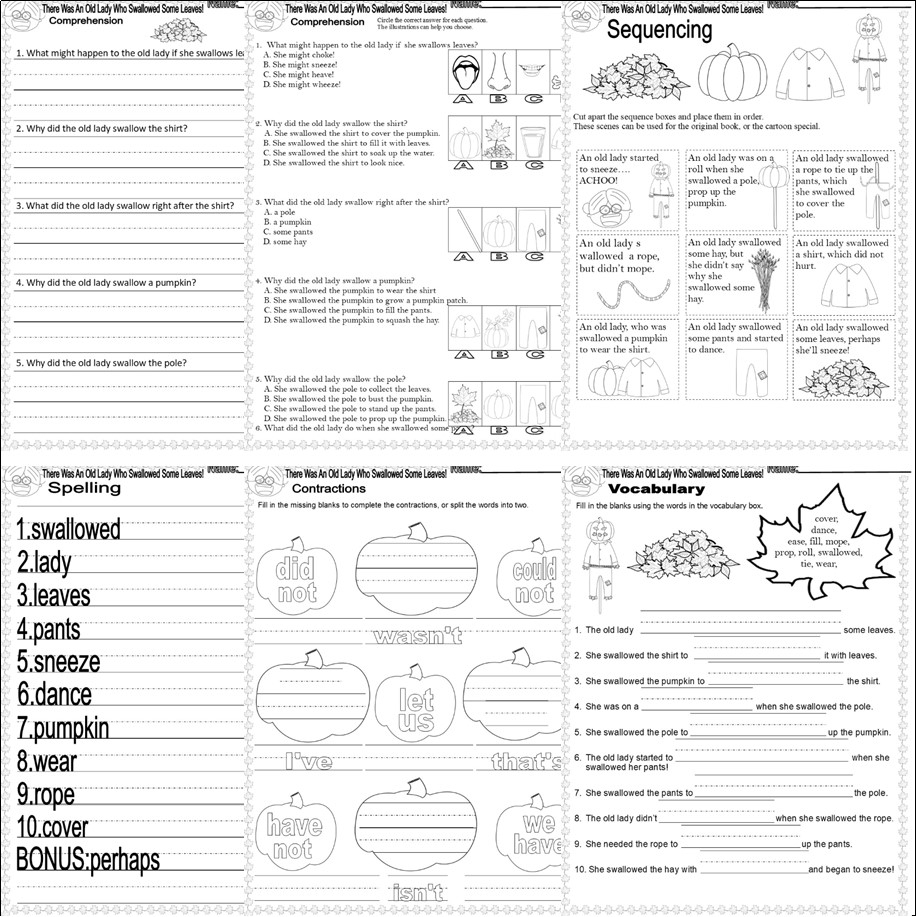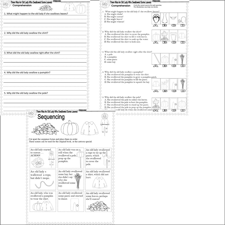 I Know There Was An Old Lady Who Swallowed Some Leaves Read Aloud Book Study Reading Comprehension Worksheets Classful