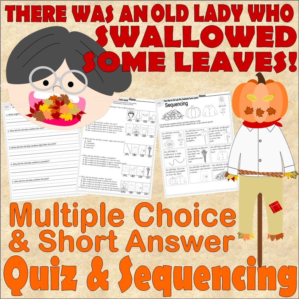There Was An Old Lady Who Swallowed Some Leaves Comprehension Quiz U0026 Sequencing Worksheets Classful