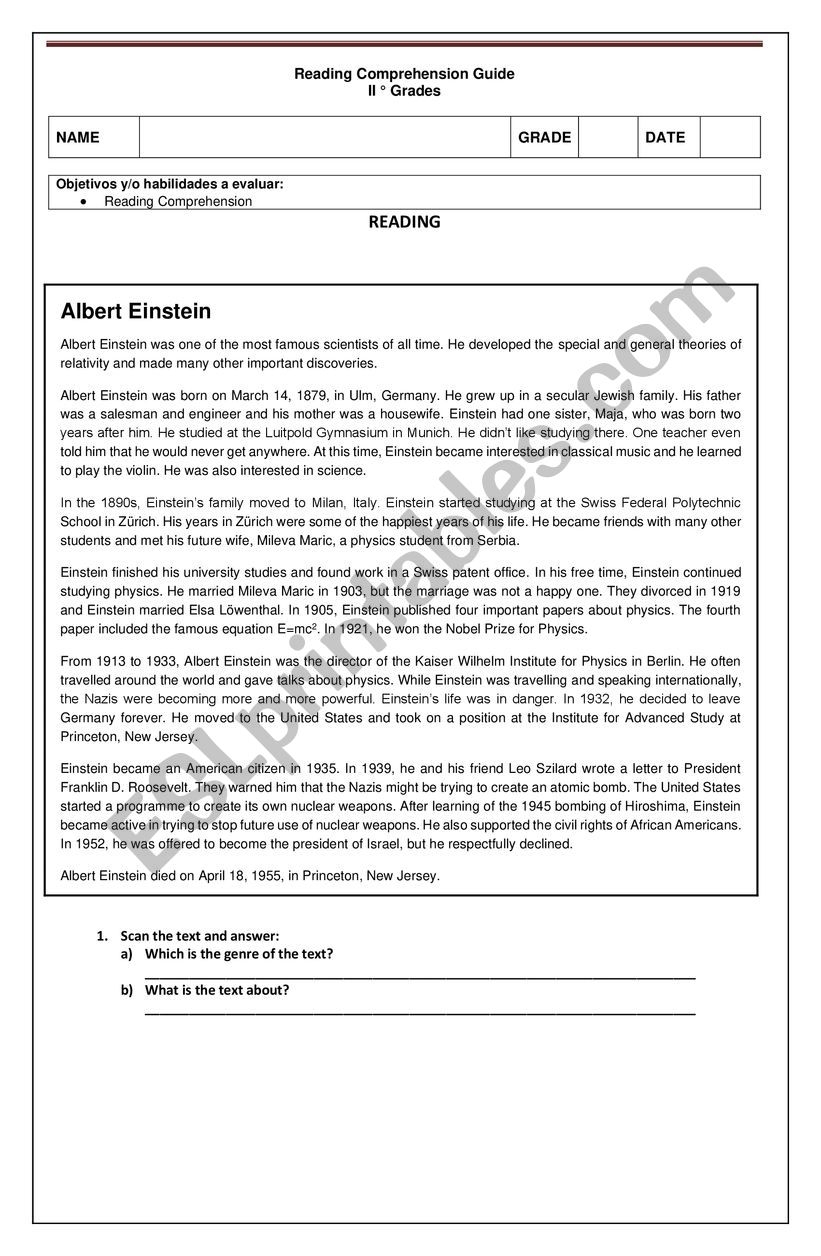 Albert Einstein Reading Comprehension Text ESL Worksheet By Kasami
