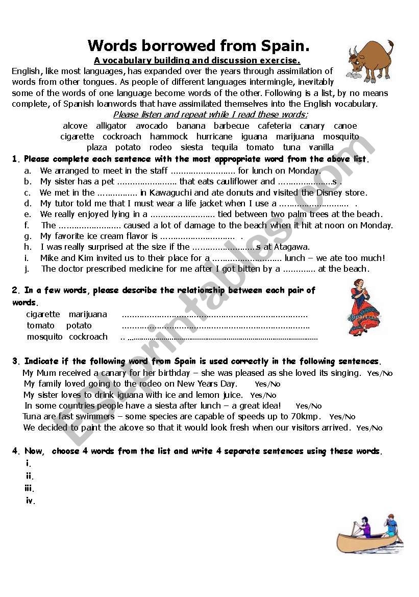 Words Borrowed From Spain Intermediate Or Advanced ESL Worksheet By Noel L