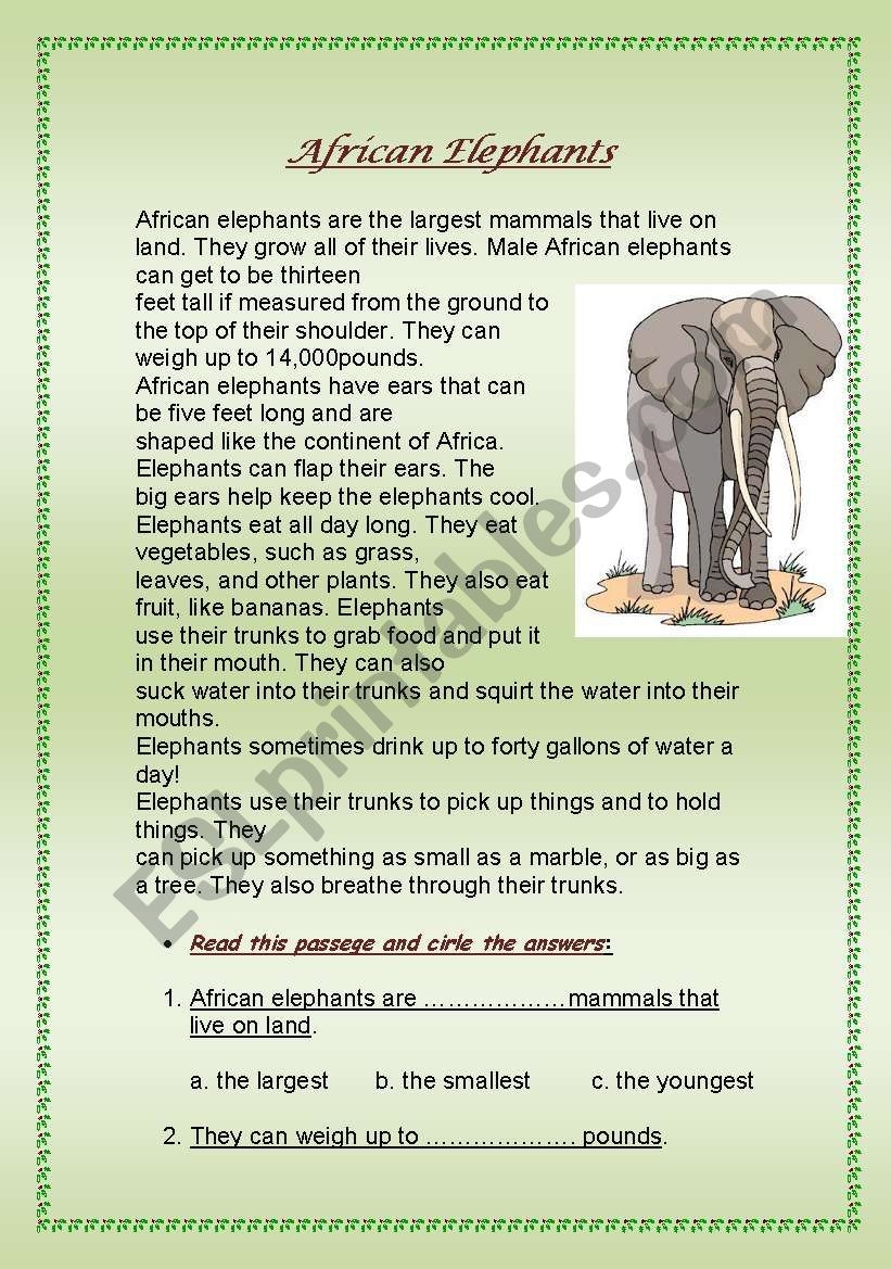 African Elephants ESL Worksheet By Emy H