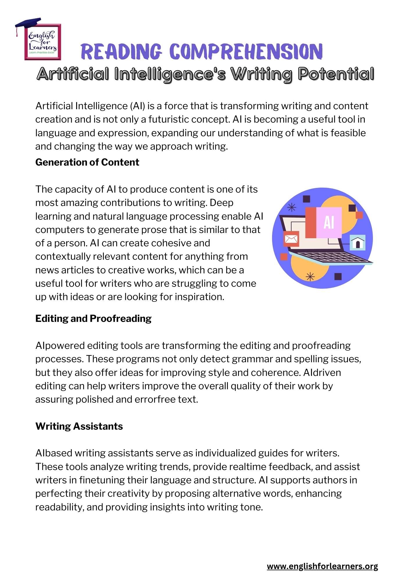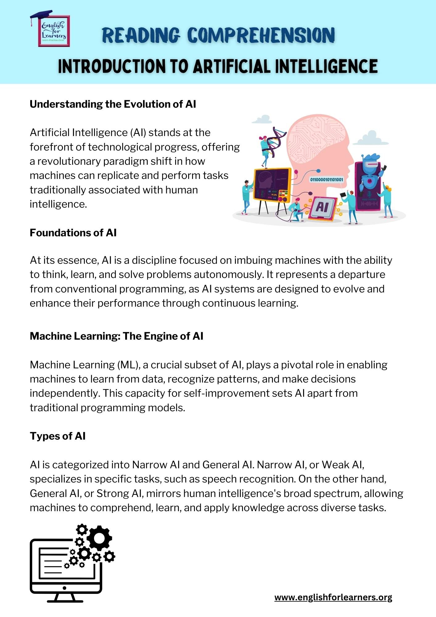 Enhance Learning with Artificial Intelligence Reading Comprehension Worksheets