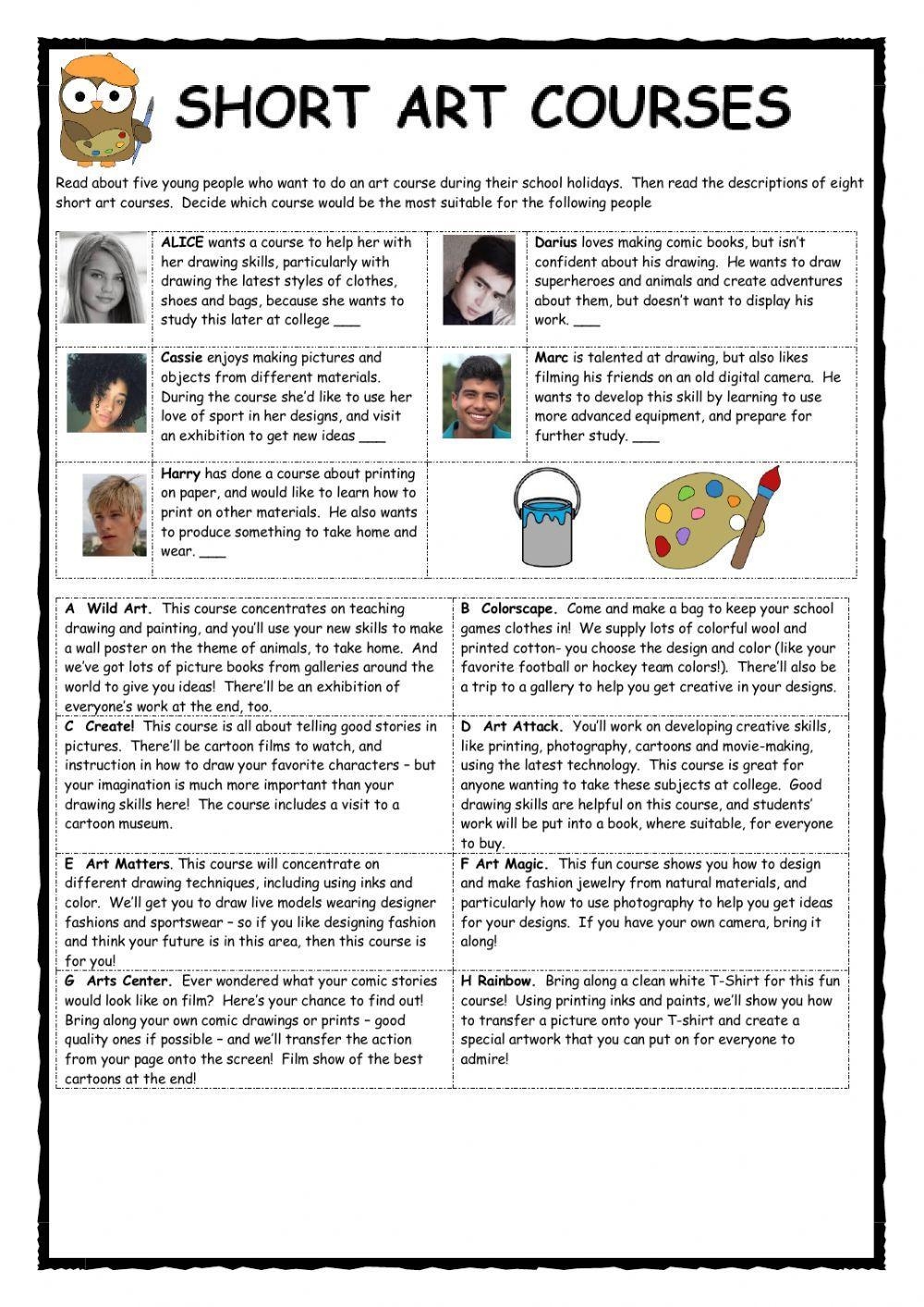 With this worksheet, students will have the opportunity to read short passages about various artists and their works. From Van Gogh to Picasso, this worksheet covers a wide range of artists and styles, making it both educational and entertaining for students.