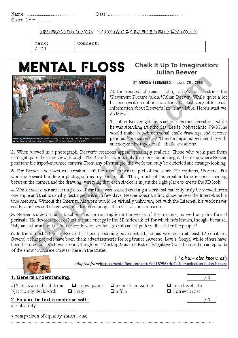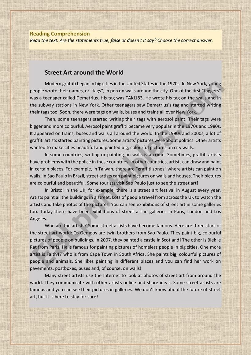 Street Art Around The World Reading Comprehension ESL Worksheet By Iornik3