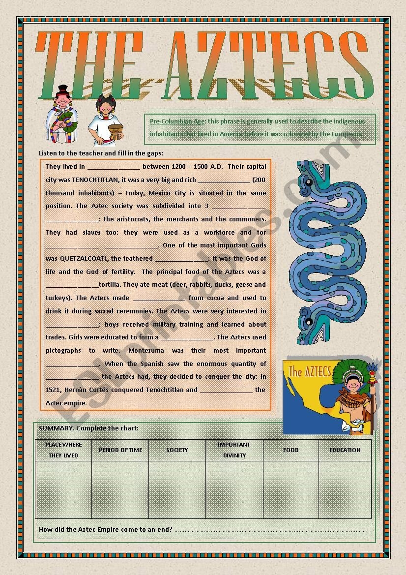 The Aztecs ESL Worksheet By Alex076