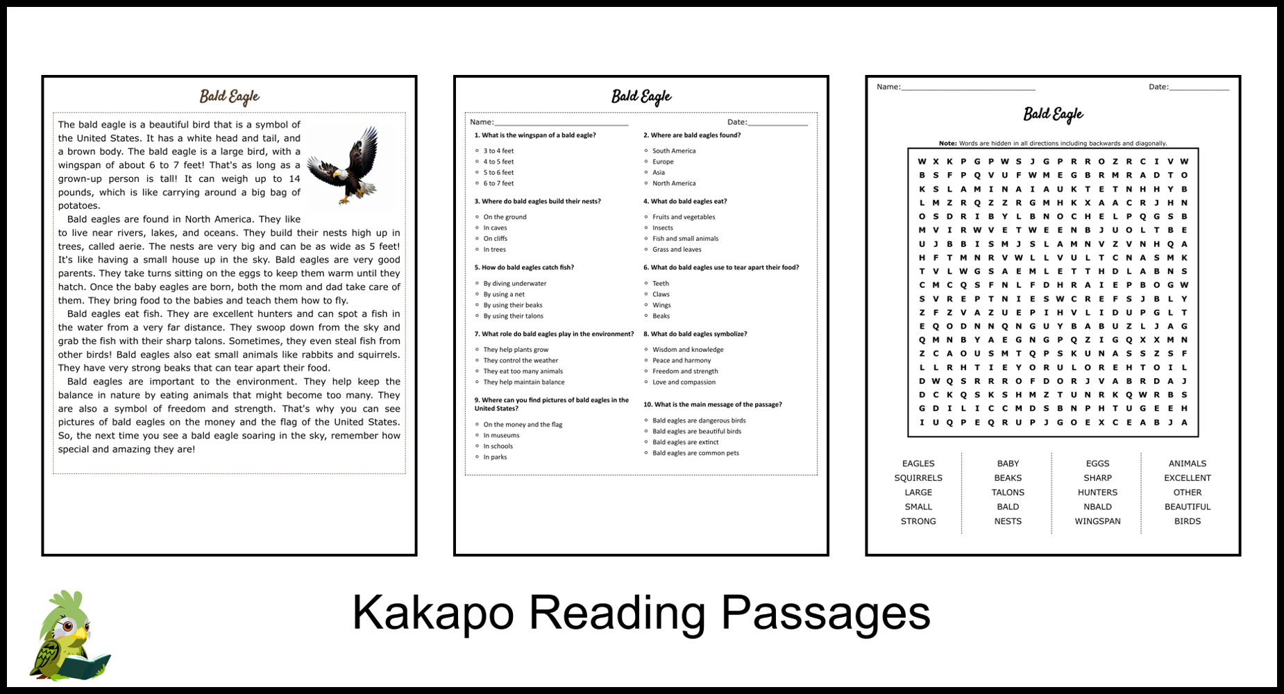 Bald Eagle Reading Comprehension And Word Search Teaching Resources