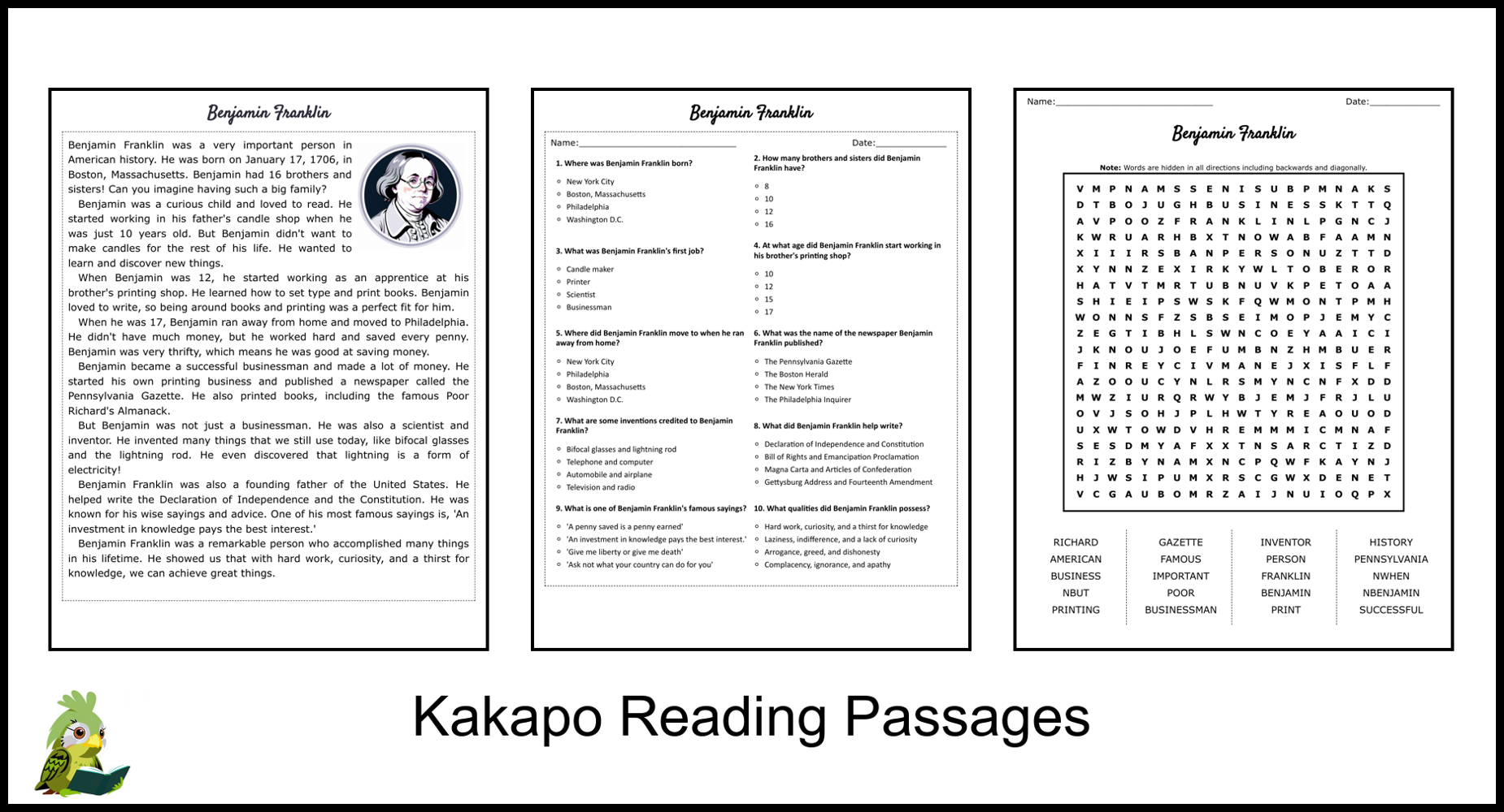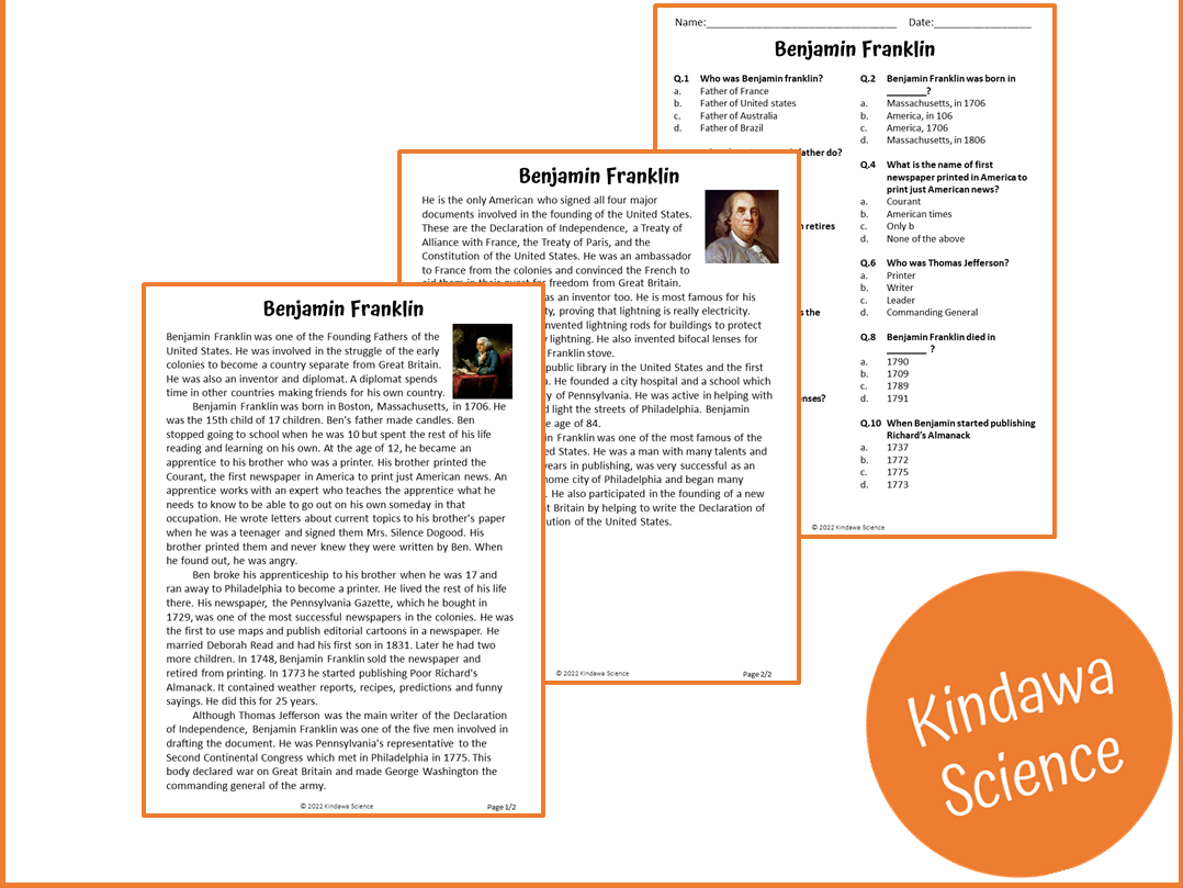 Benjamin Franklin Reading Comprehension Passage And Questions