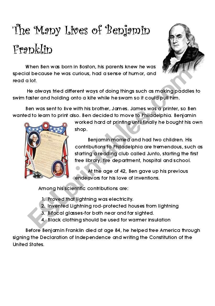 The Many Lives Of Benjamin Franklin ESL Worksheet By Lilacrose