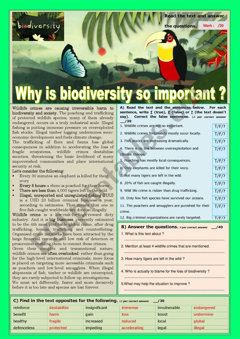 Why Is BIODIVERSITY So Important Reading Comprehension Or Test