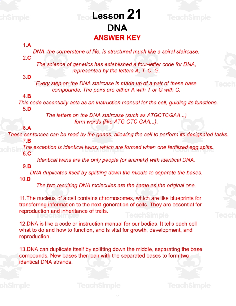 Science Reading Comprehension Passage 21 DNA PDF By Teach Simple