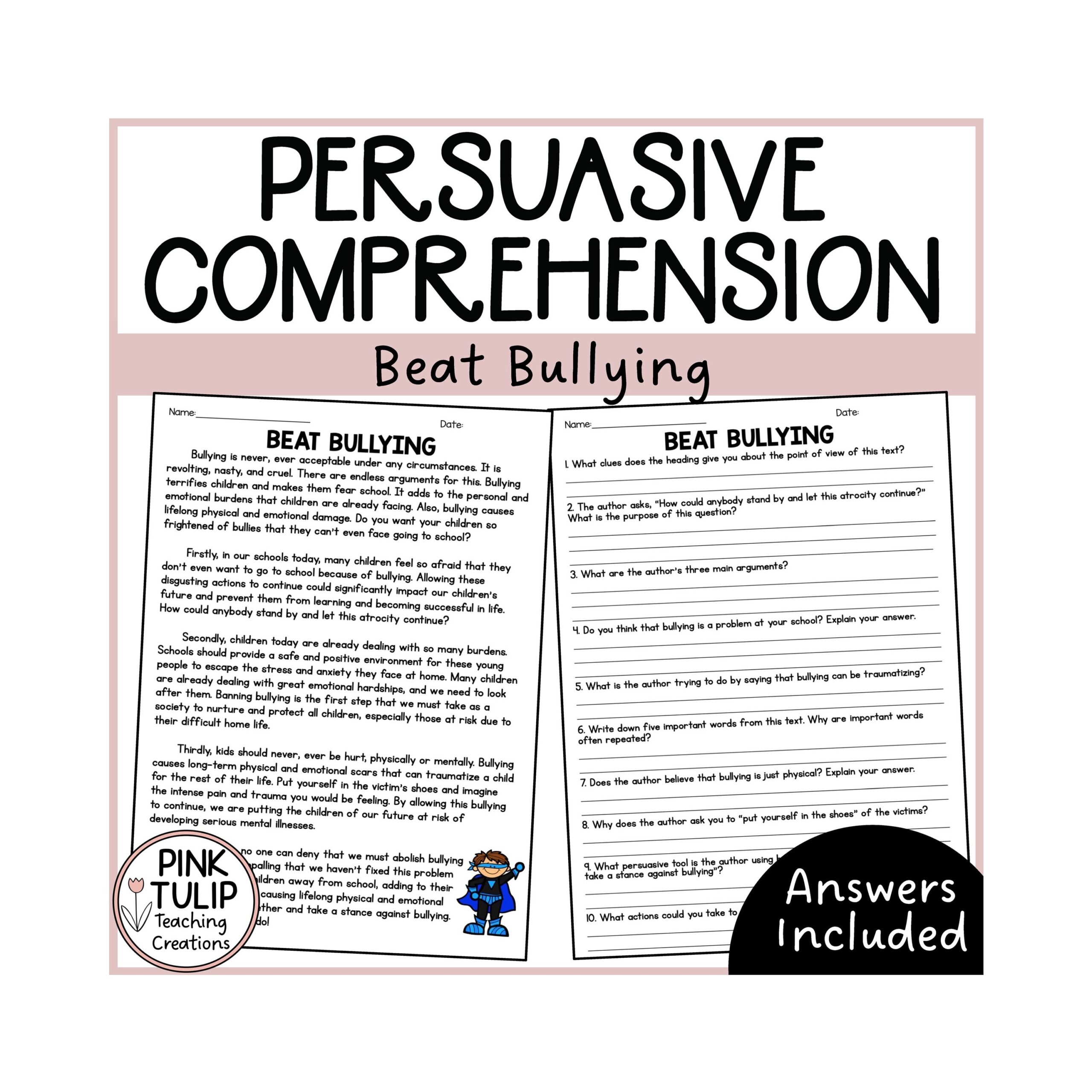 Persuasive Writing Comprehension Beat Bullying Etsy