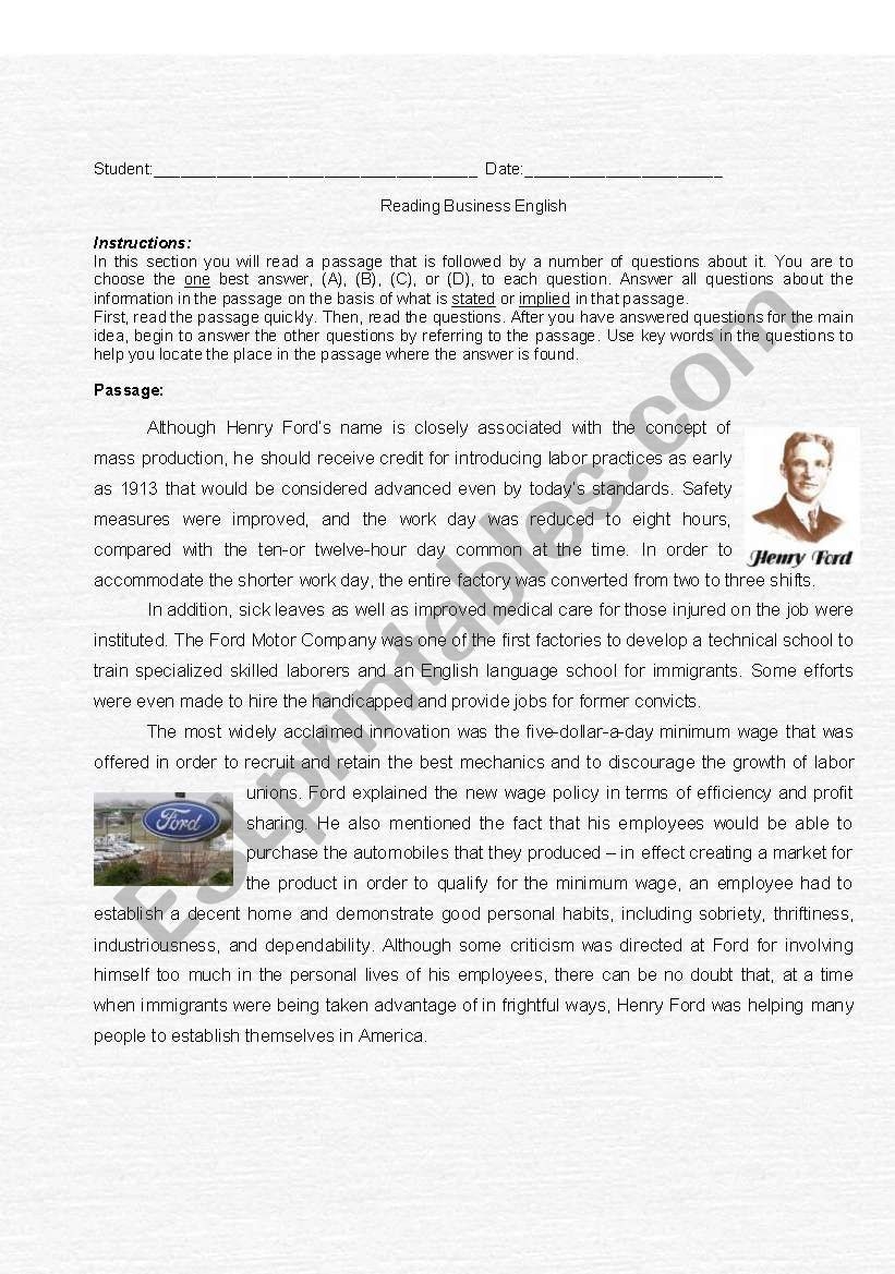 Business English Reading Comprehension Worksheets