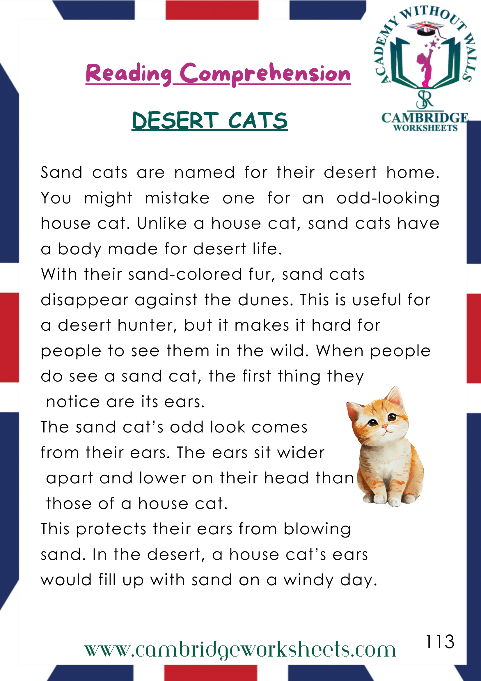 Cambridge Reading Comprehension Worksheets
