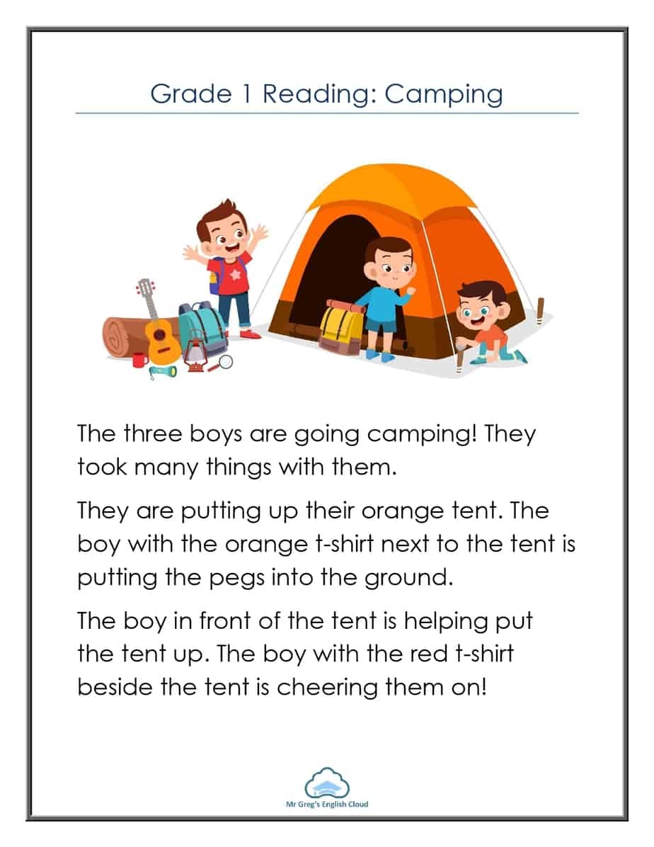 Grade 1 Reading Camping Mr Gregs English Cloud Worksheets Library