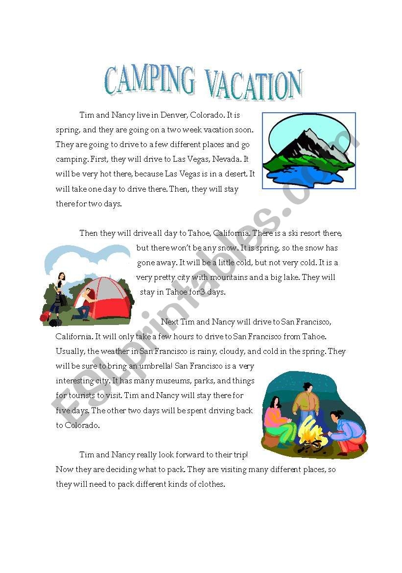 READING COMPREHENSION GO CAMPING ESL Worksheet By Tagoreluz1