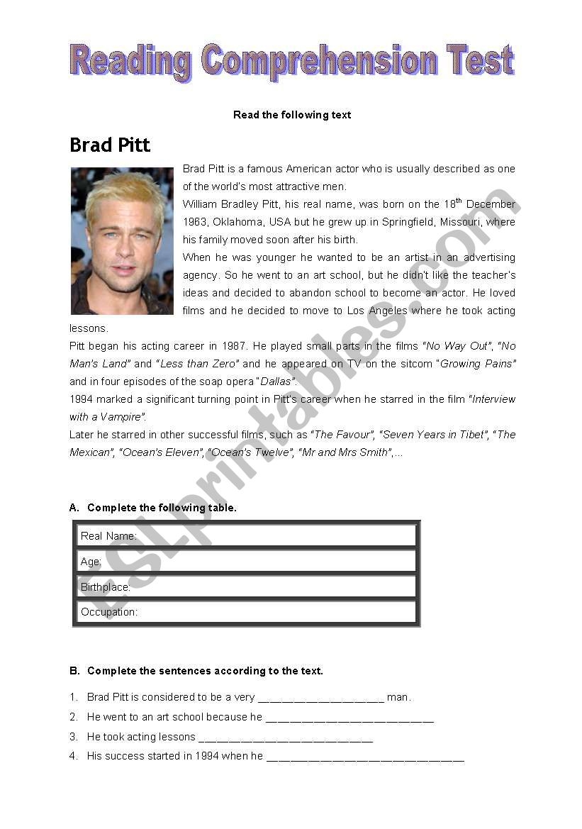 Reading Comprehension About A Famous Actress ESL Worksheet By Debie