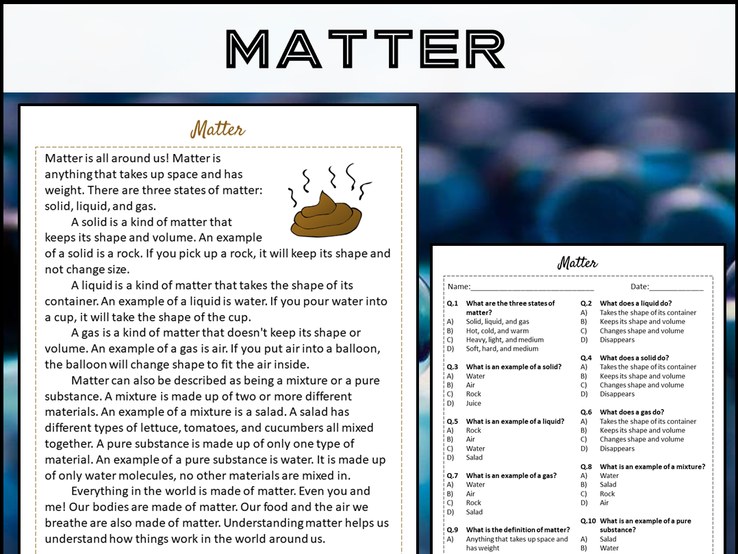 Don’t miss out on this opportunity to enhance your students’ understanding of changes in matter. Download these reading comprehension worksheets today and watch their knowledge and confidence soar!