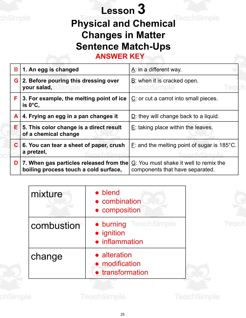 With these worksheets, students will explore concepts such as physical and chemical changes, states of matter, and properties of substances. They will be challenged to read passages, answer questions, and apply their knowledge to real-world scenarios.