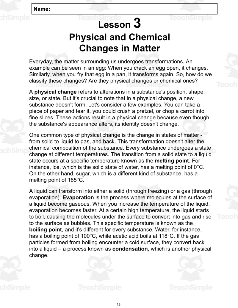 Each worksheet is carefully crafted to promote critical thinking and enhance reading skills. Students will gain a deeper understanding of how matter can undergo various changes and the factors that influence these transformations.