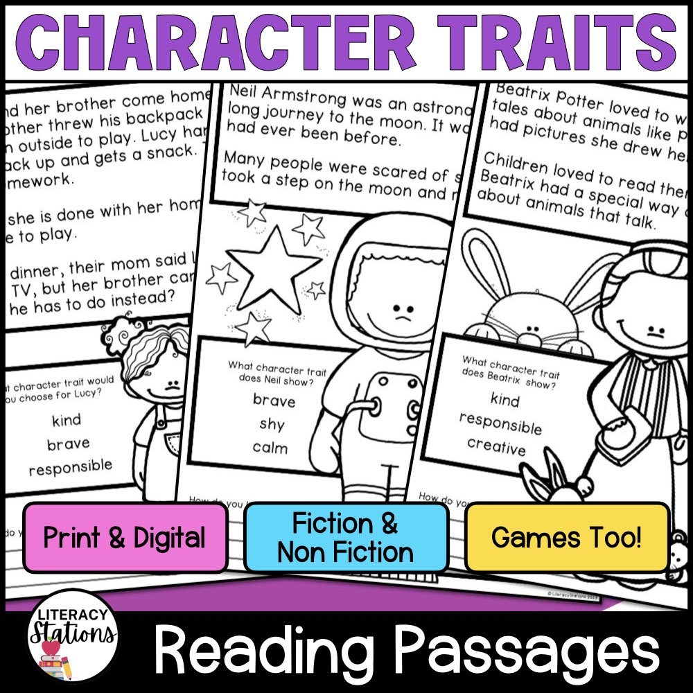 Character Traits Reading Passages Literacy Stations