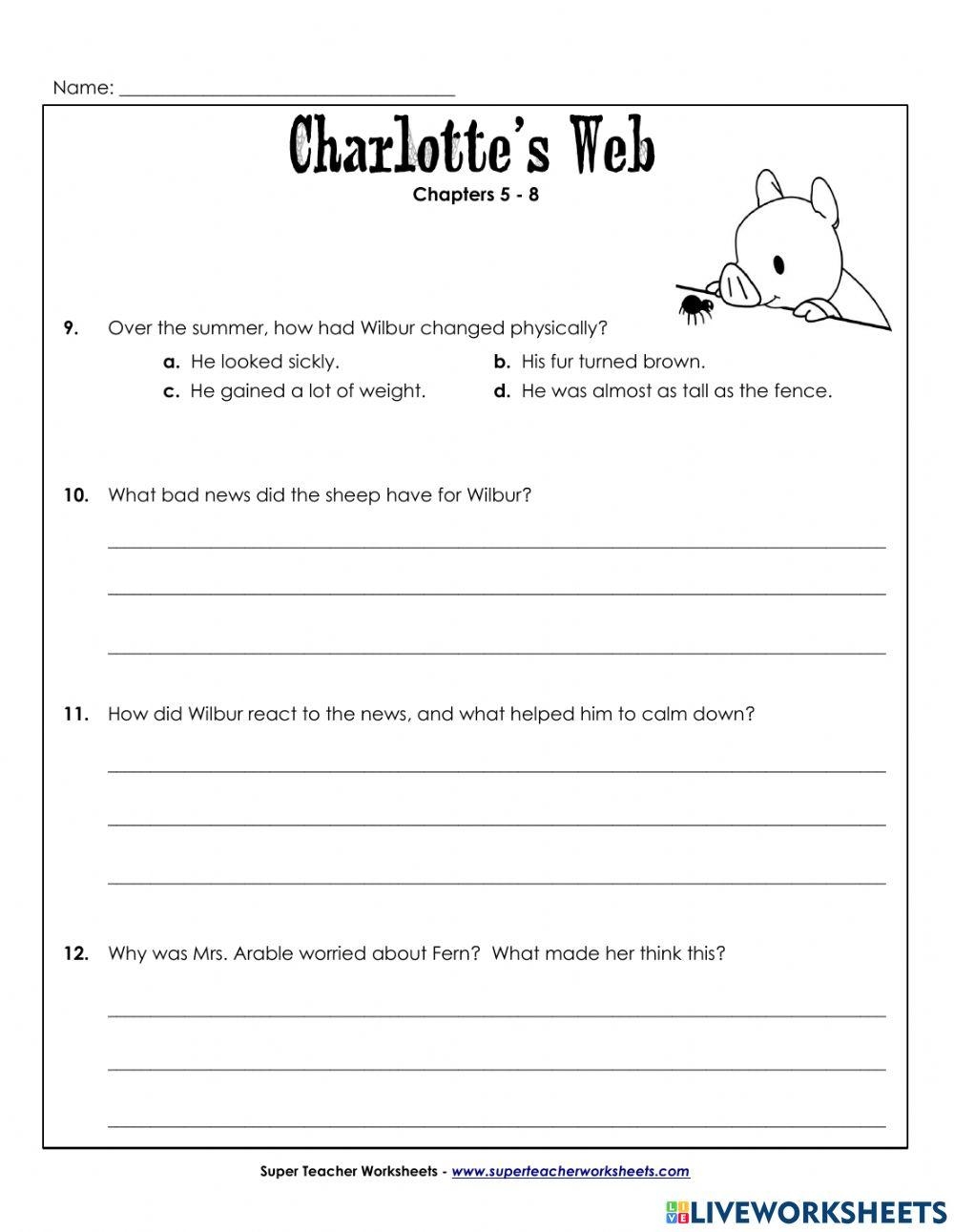 Charlottes Web Chapters 1 4 Questions Online Exercise For Live Worksheets Library
