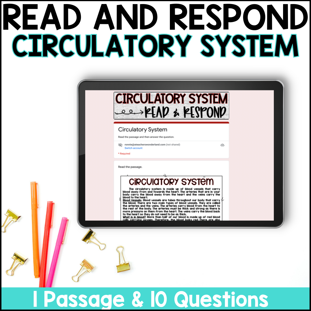Circulatory System Reading Comprehension U0026 Quiz Google Forms Science Centers A Teacher s Wonderland