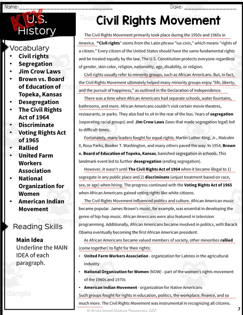 So, next time you’re looking for an engaging and educational way to teach students about civil rights, consider incorporating reading comprehension worksheets into your lesson plans. Your students will thank you for it!