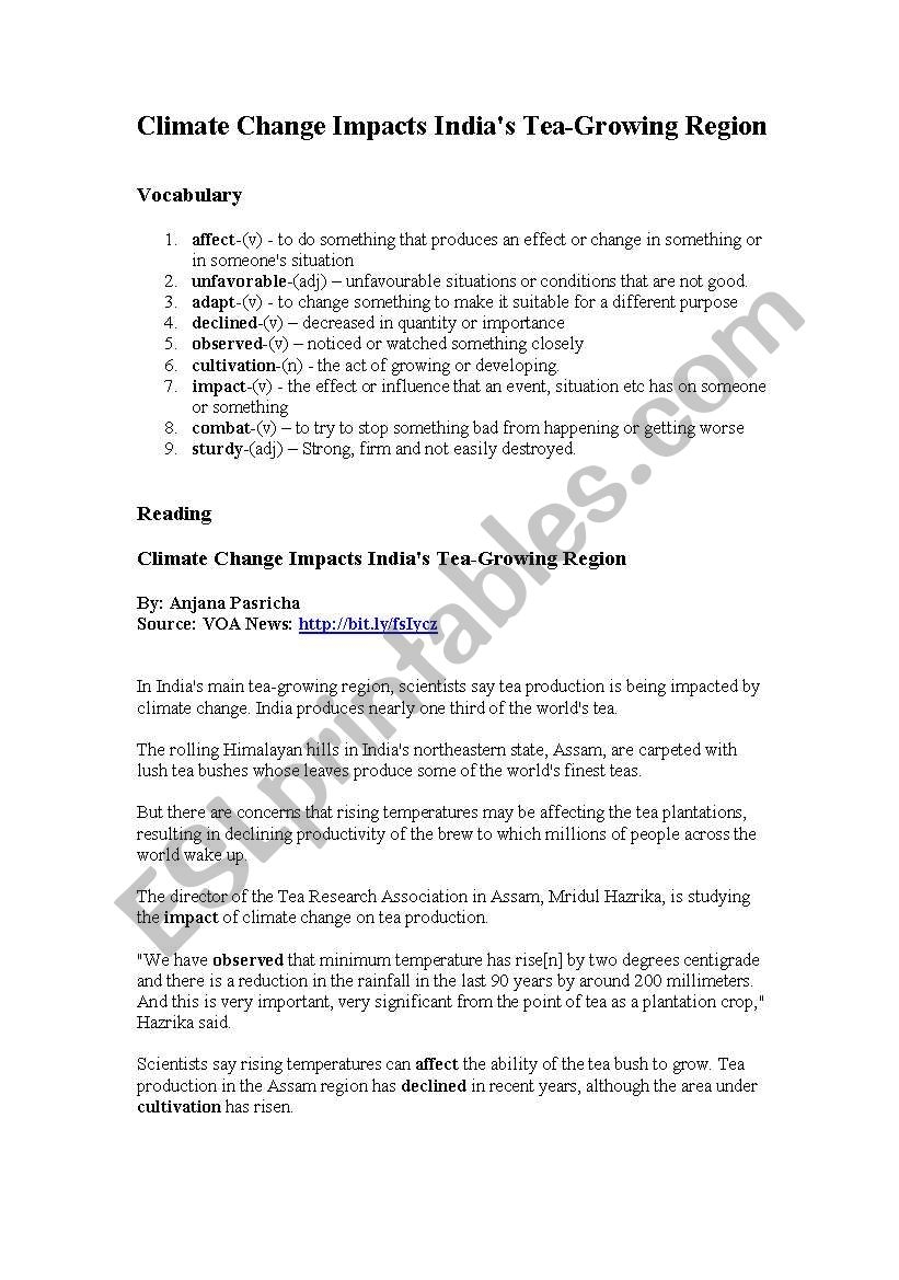 Climate Change Effects Climate And Ecosystems Reading Passage Worksheets Library