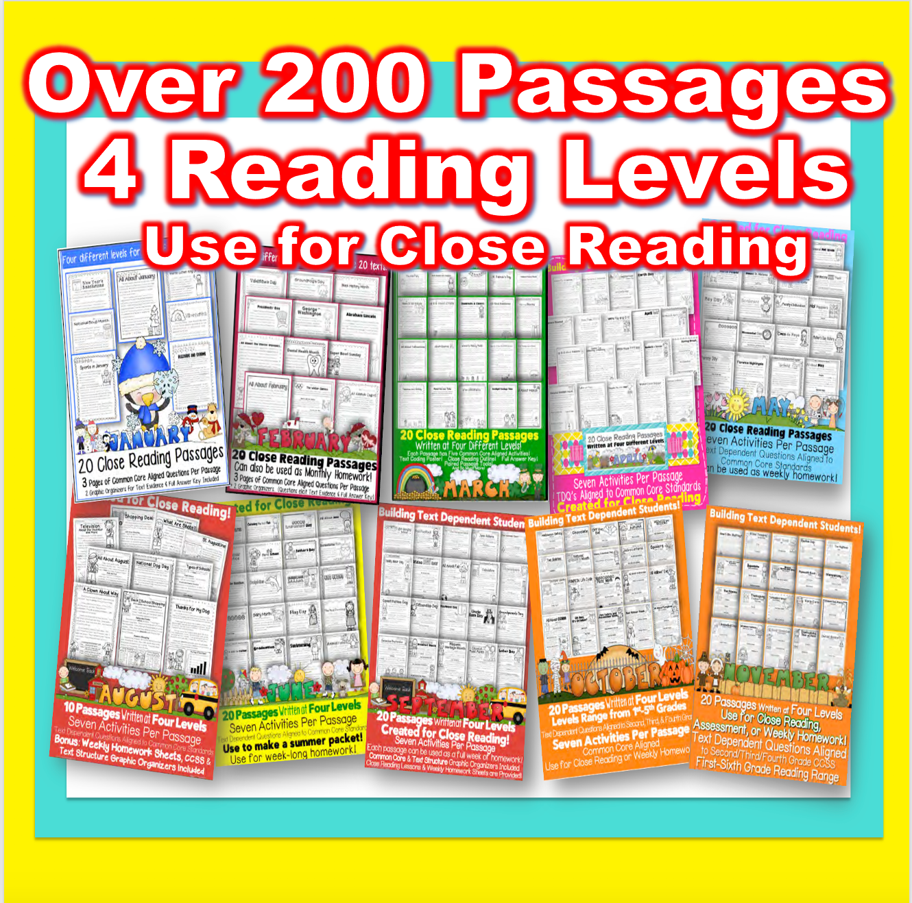 Full Year Close Reading Leveled Passages U0026 Activities Monthly Themes 2500 Pages Worksheets Library