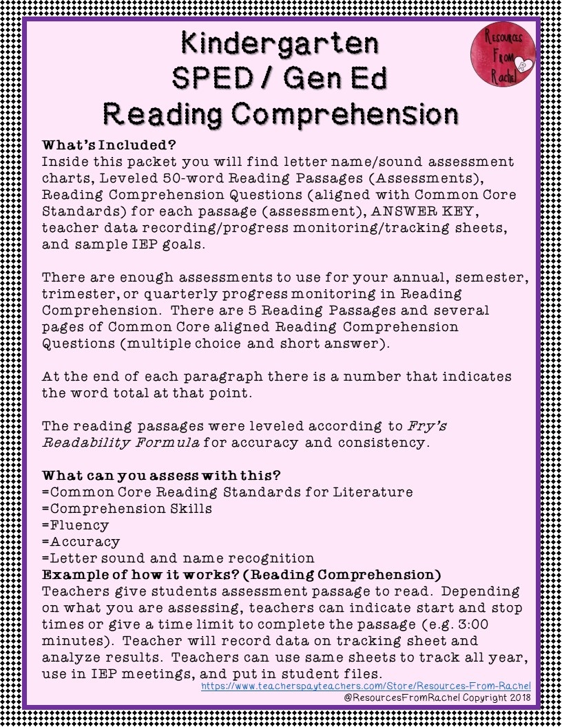 Reading Comprehension Assessments Kindergarten Volume 2 Classful
