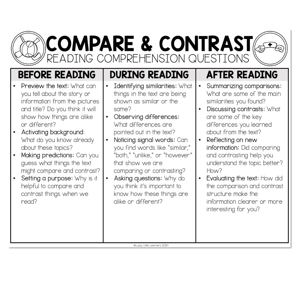 Compare U0026 Contrast Worksheets And Printable Activities For Reading