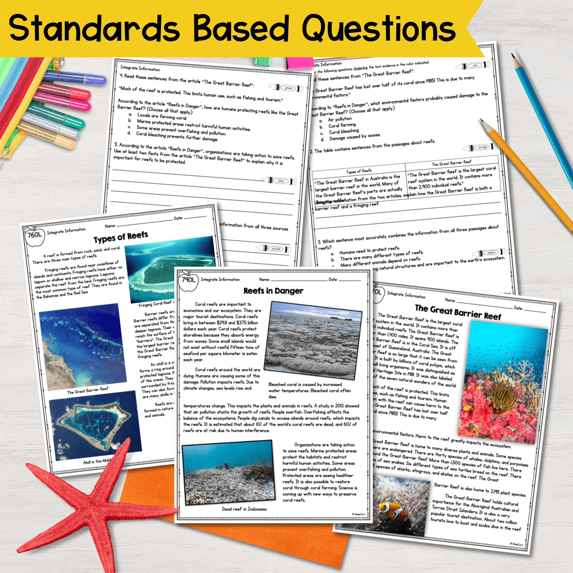 Coral Reefs Reading Comprehension Passage Printable Worksheet Teaching Resources