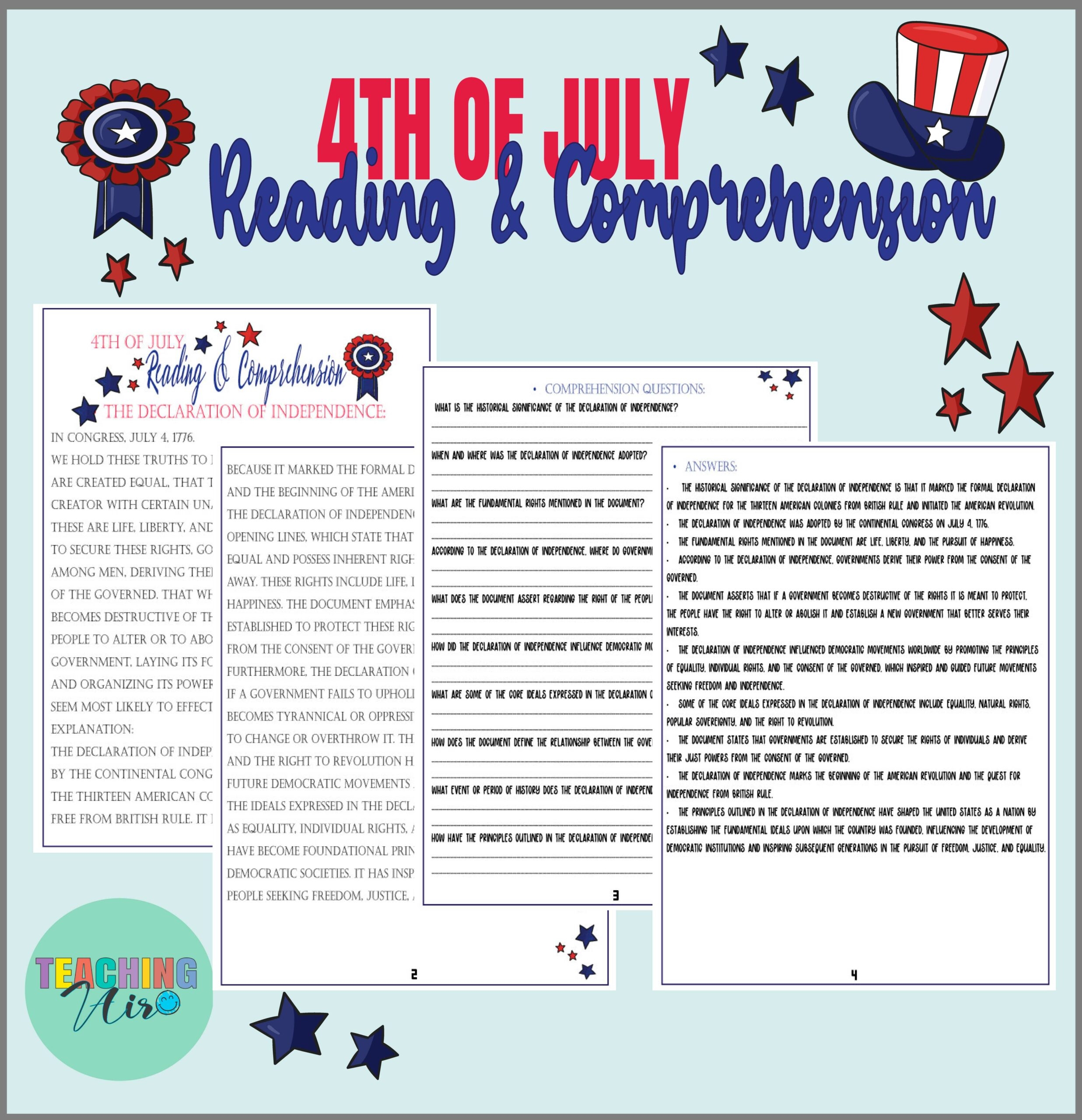 Reading comprehension worksheets on the Declaration of Independence not only help students improve their reading skills but also deepen their understanding of American history and the principles that shaped the nation.