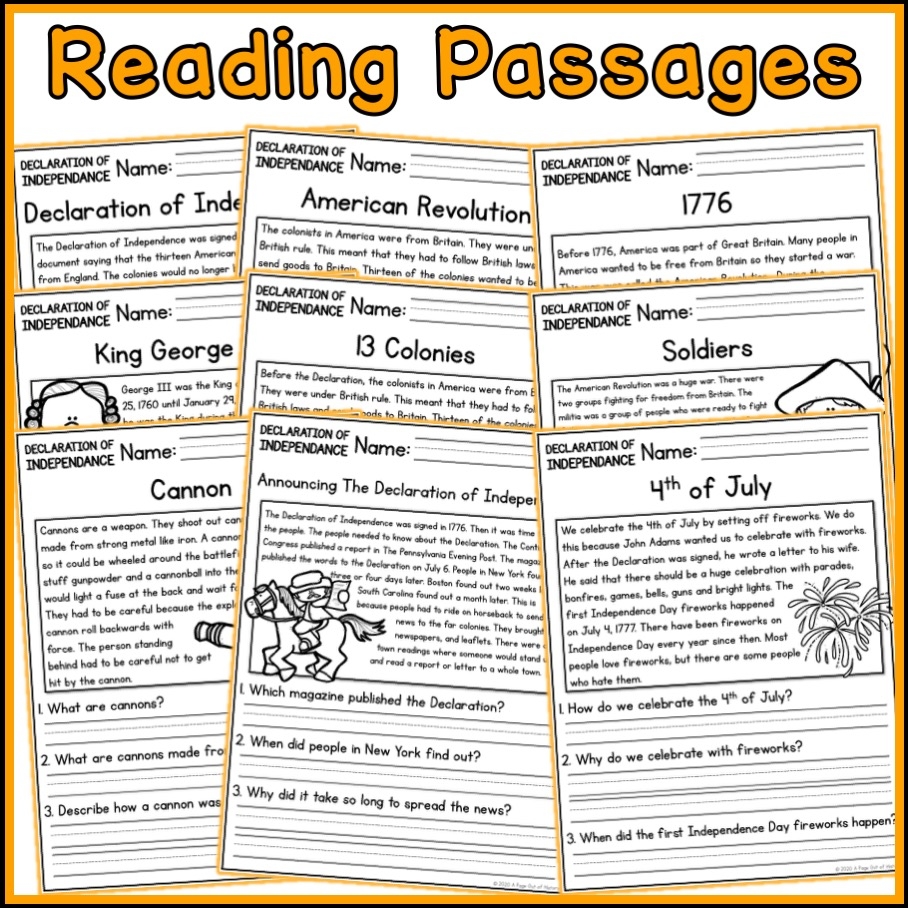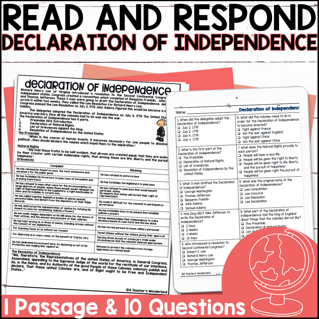 Declaration Of Independence Social Studies Reading Comprehension Passages