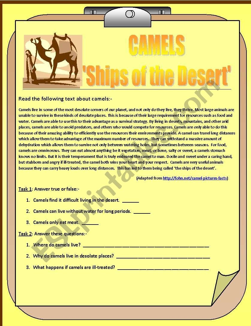 Camels Ships Of The Desert A Reading Comprehension ESL Worksheet By Mws1911