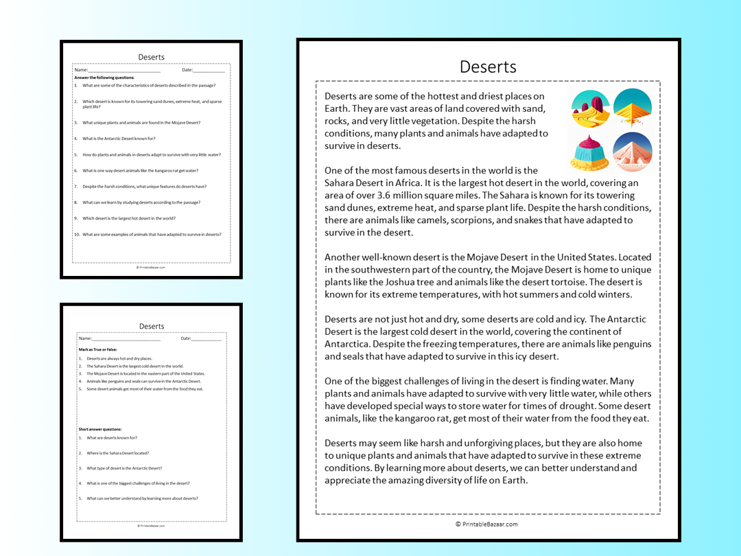 So why wait? Dive into the world of deserts today with our engaging and informative Desert Reading Comprehension Worksheet. You’ll be amazed at how much you can learn and how much your reading comprehension skills can improve with just a little practice!