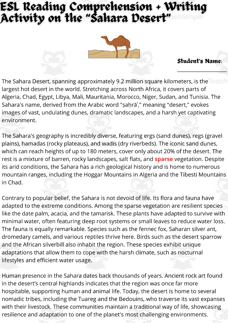 Unlocking the Secrets of the Desert with our Reading Comprehension Worksheet