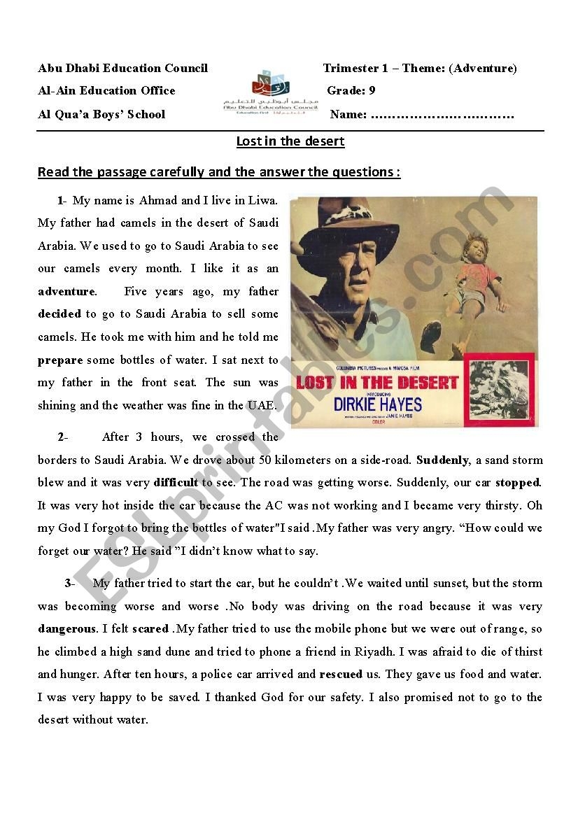 LOST IN THE DESERT ESL Worksheet By Ahmedmostafa