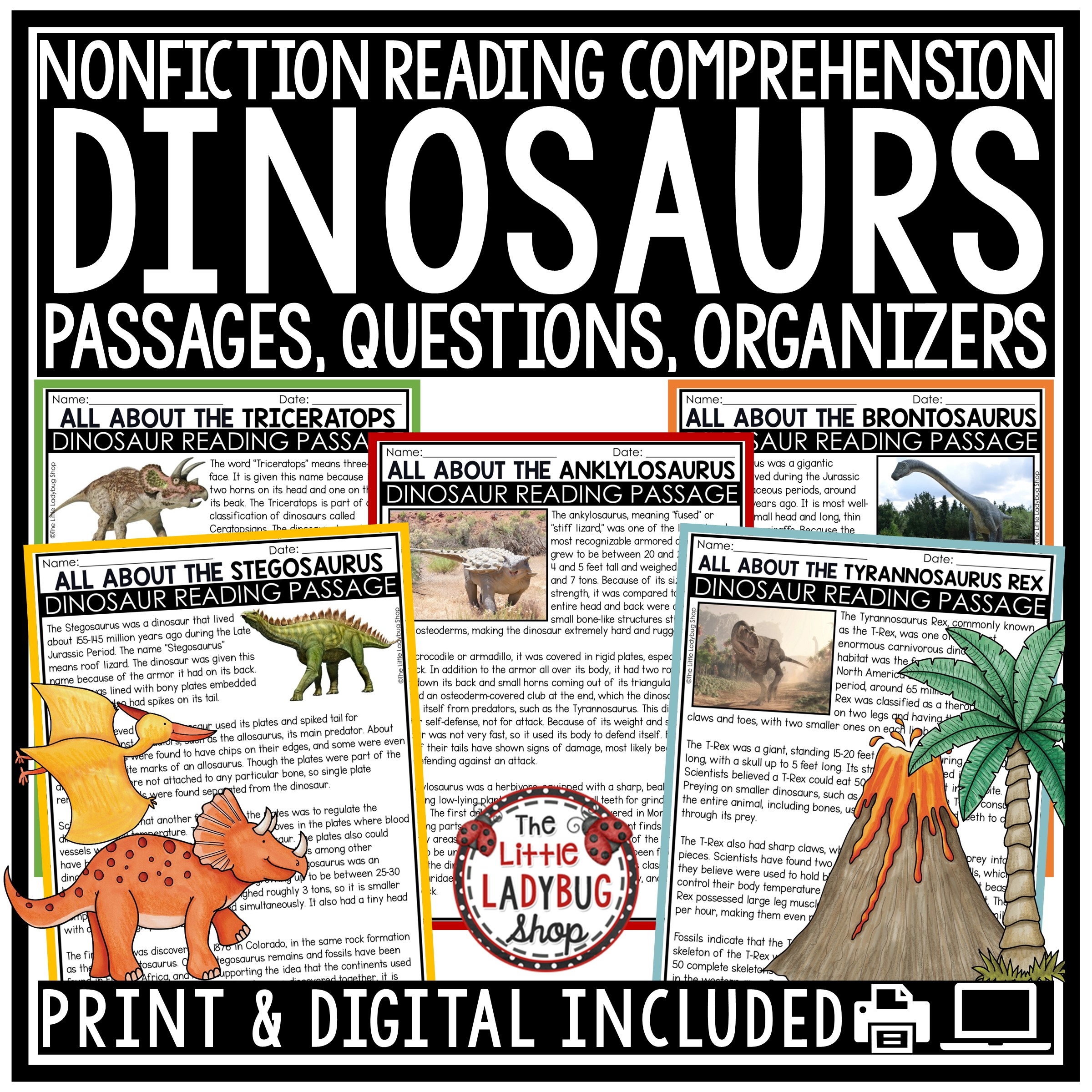 Dinosaurs Activities Nonfiction Reading Comprehension Passages The Little Ladybug Shop
