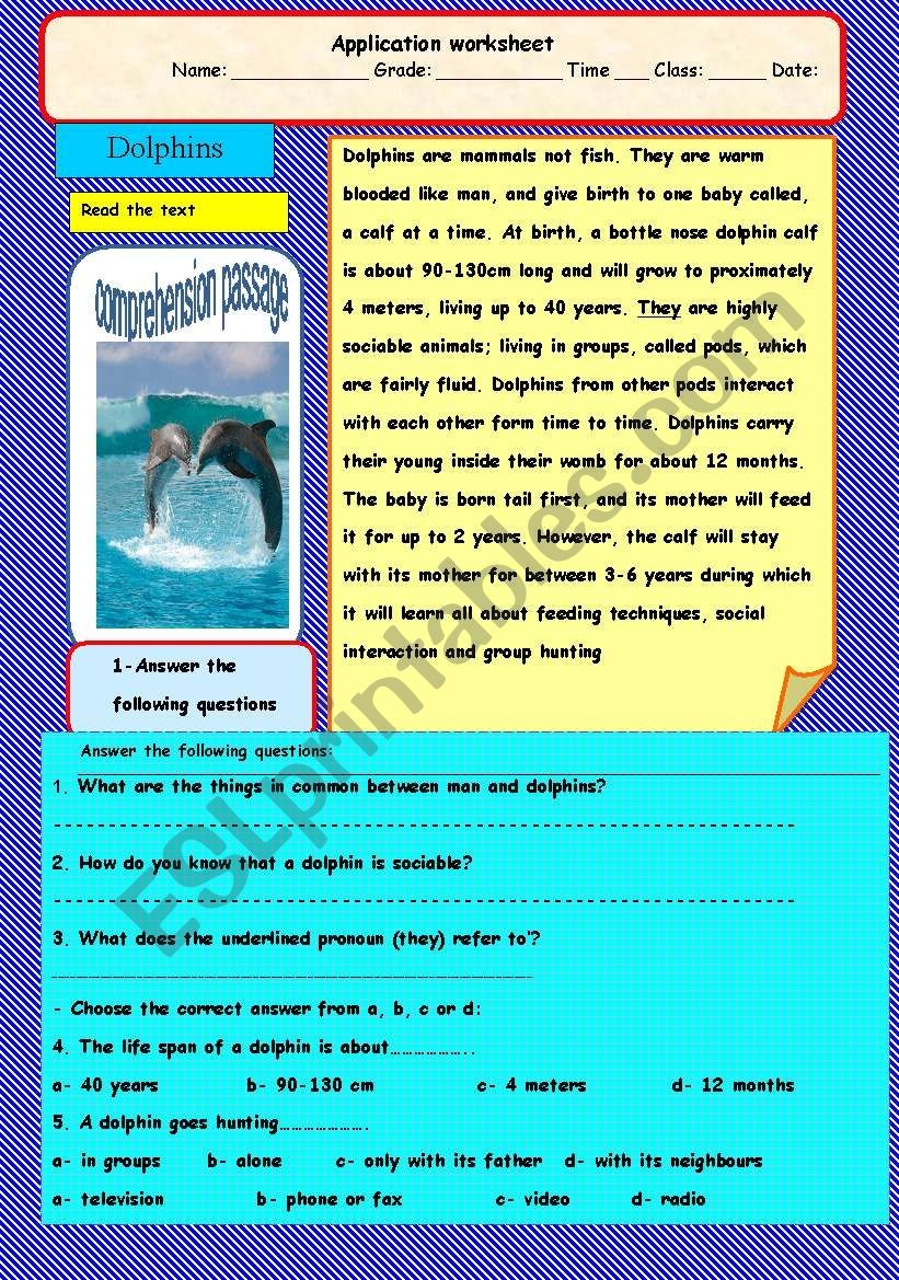 Dolphins A Comprehension Passage ESL Worksheet By Adel A