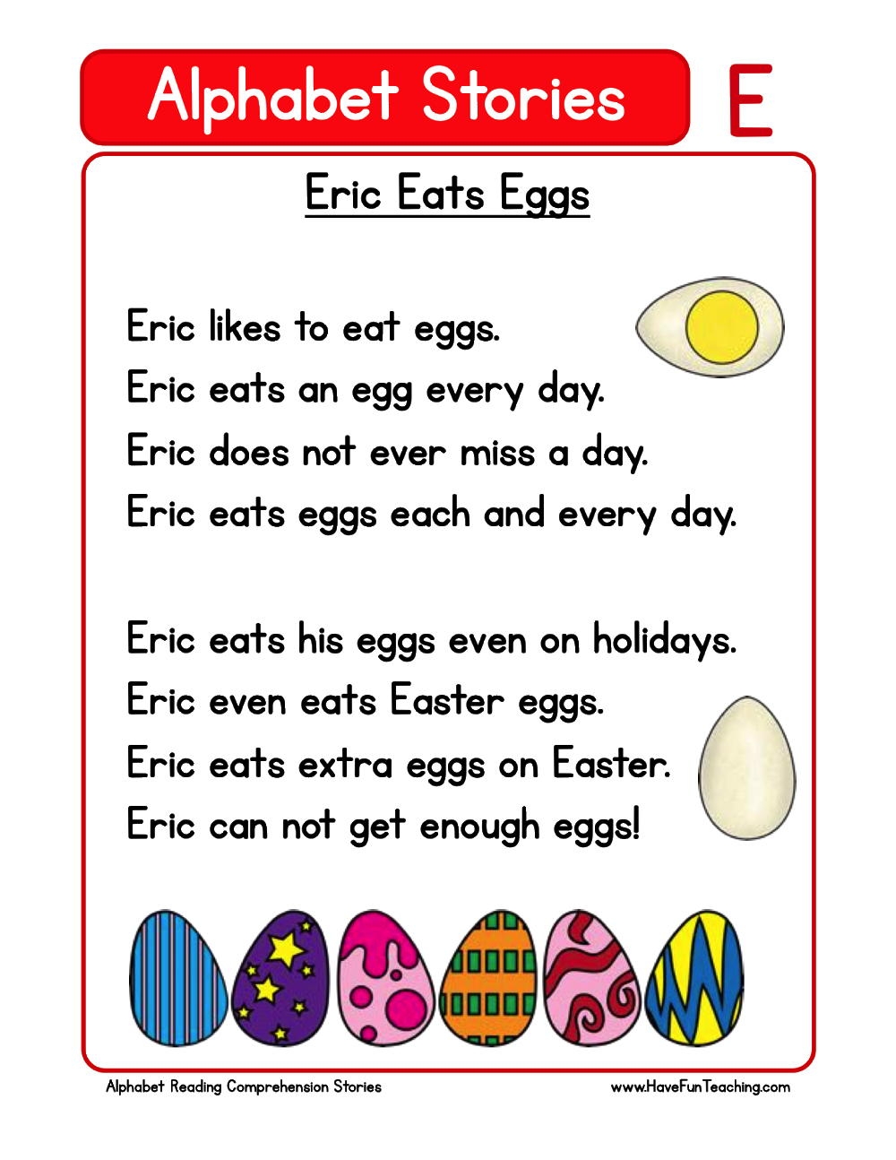 Alphabet Stories Letter E Reading Comprehension Worksheet Have Fun Teaching