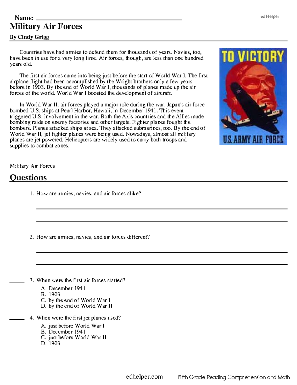 Edhelper Reading Comprehension Worksheets
