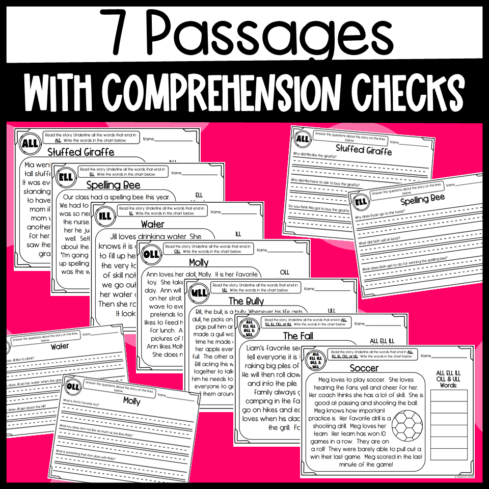 ALL ELL ILL OLL And ULL Word Family Phonics Reading Passages Made By Teachers