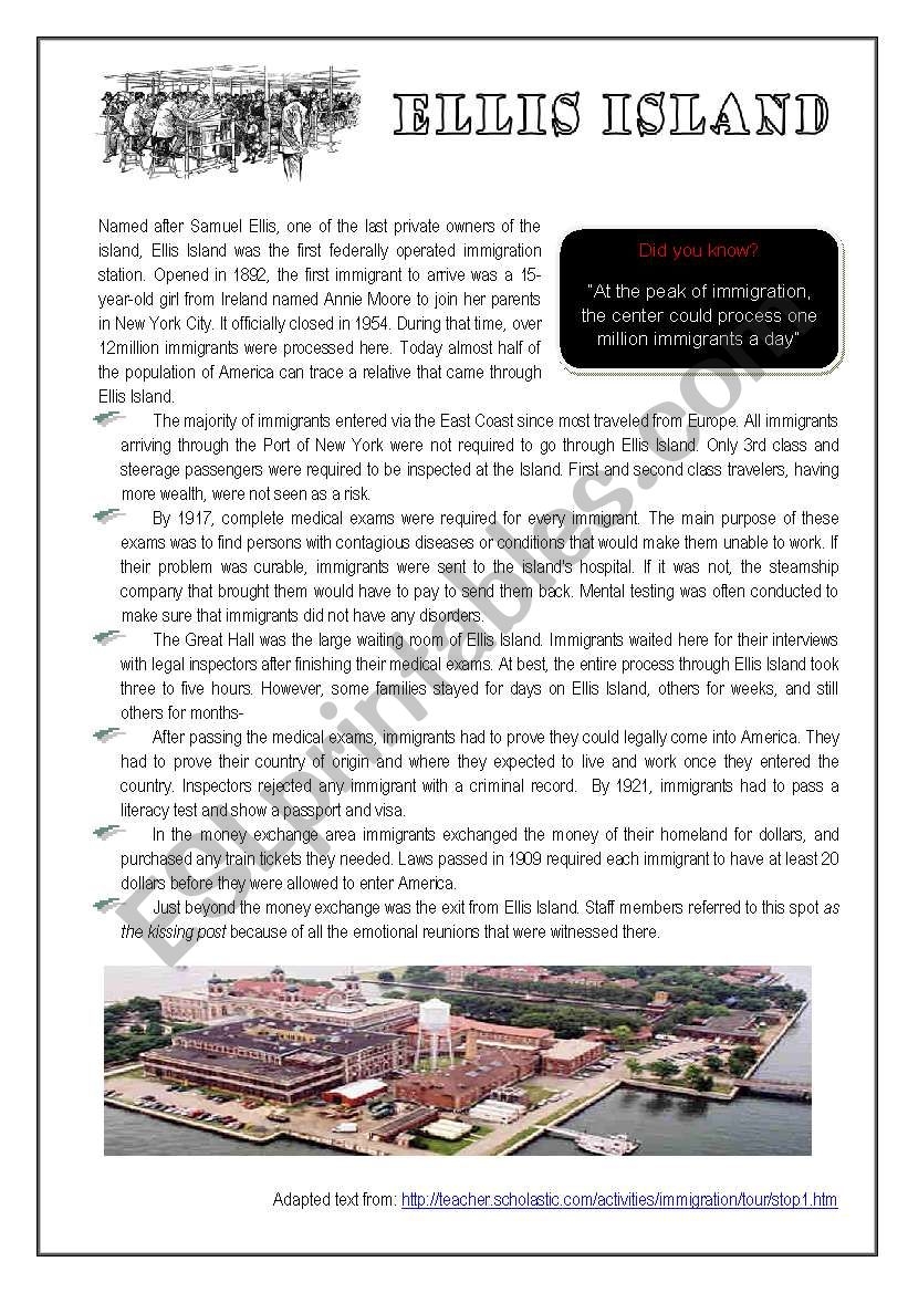 Ellis Island ESL Worksheet By Mmargalef