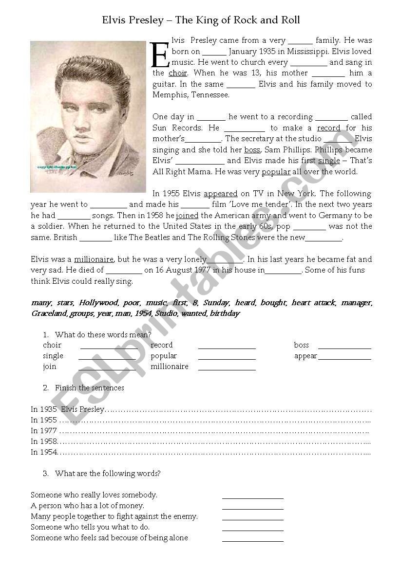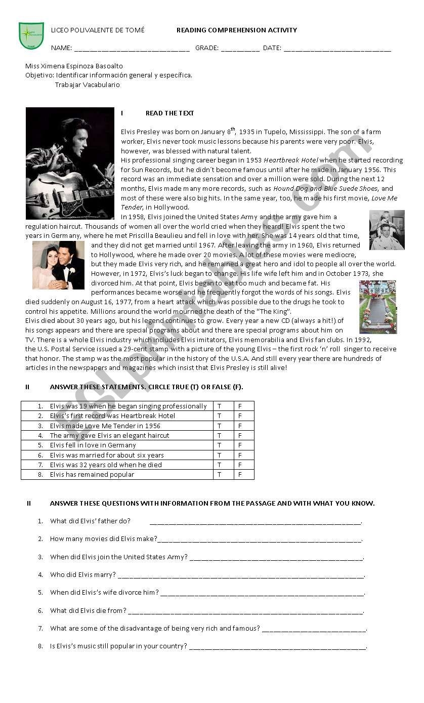 Elvis Presley Reading Comprehension ESL Worksheet By Ximena 14