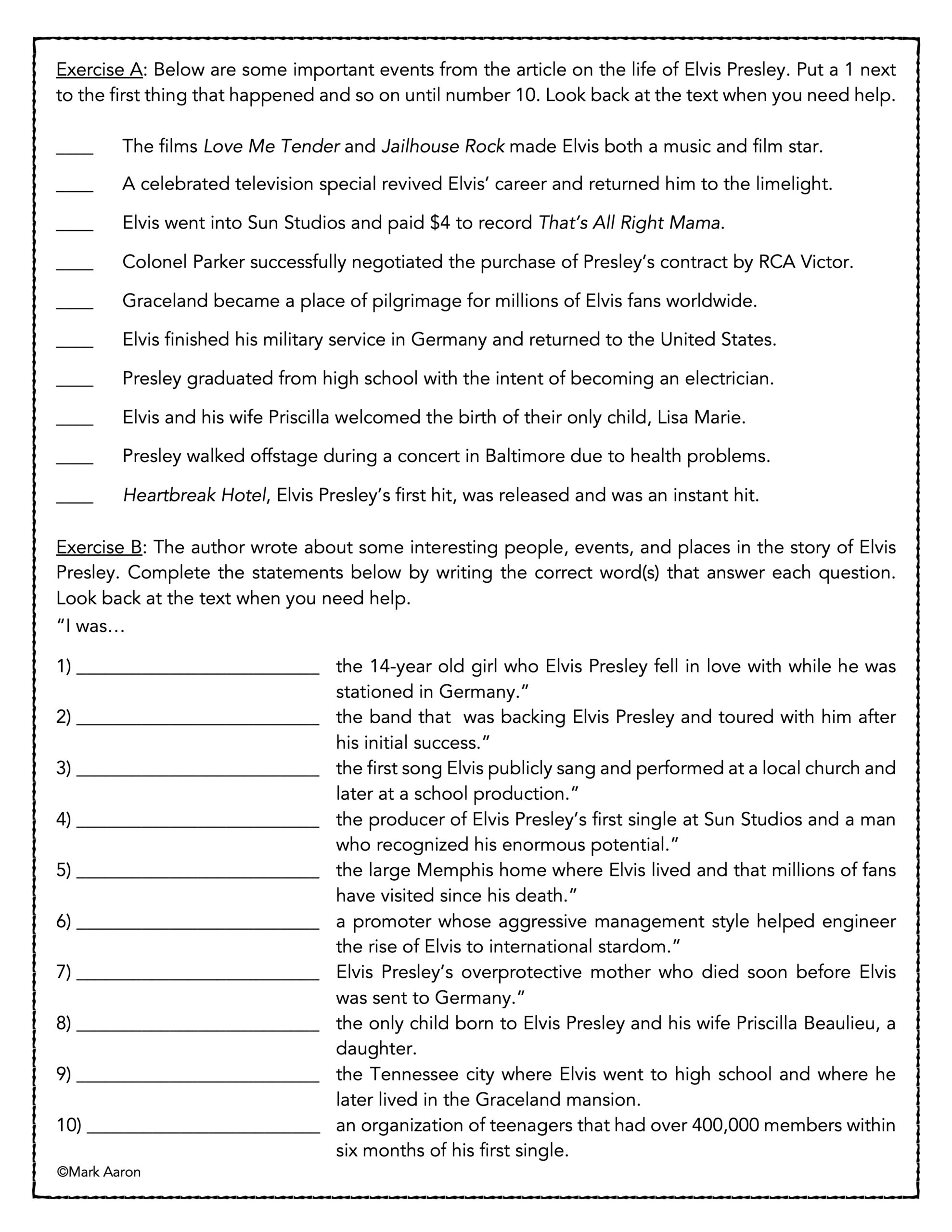 By completing this worksheet, you’ll not only enhance your reading comprehension skills but also gain a deeper appreciation for the music and legacy of Elvis Presley. So grab a pencil, get comfortable, and let’s dive into the world of the King of Rock ‘n’ Roll!