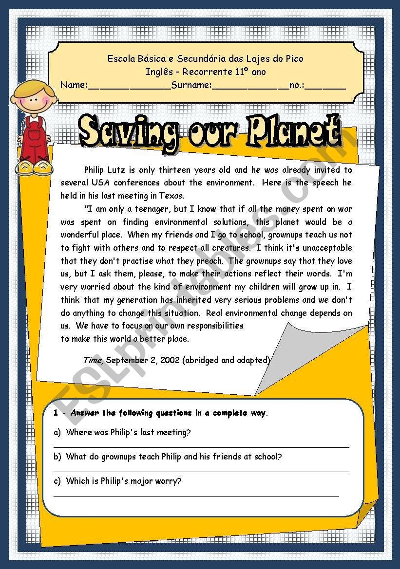 Environment Reading Worksheet ESL Worksheet By Candidacorreia