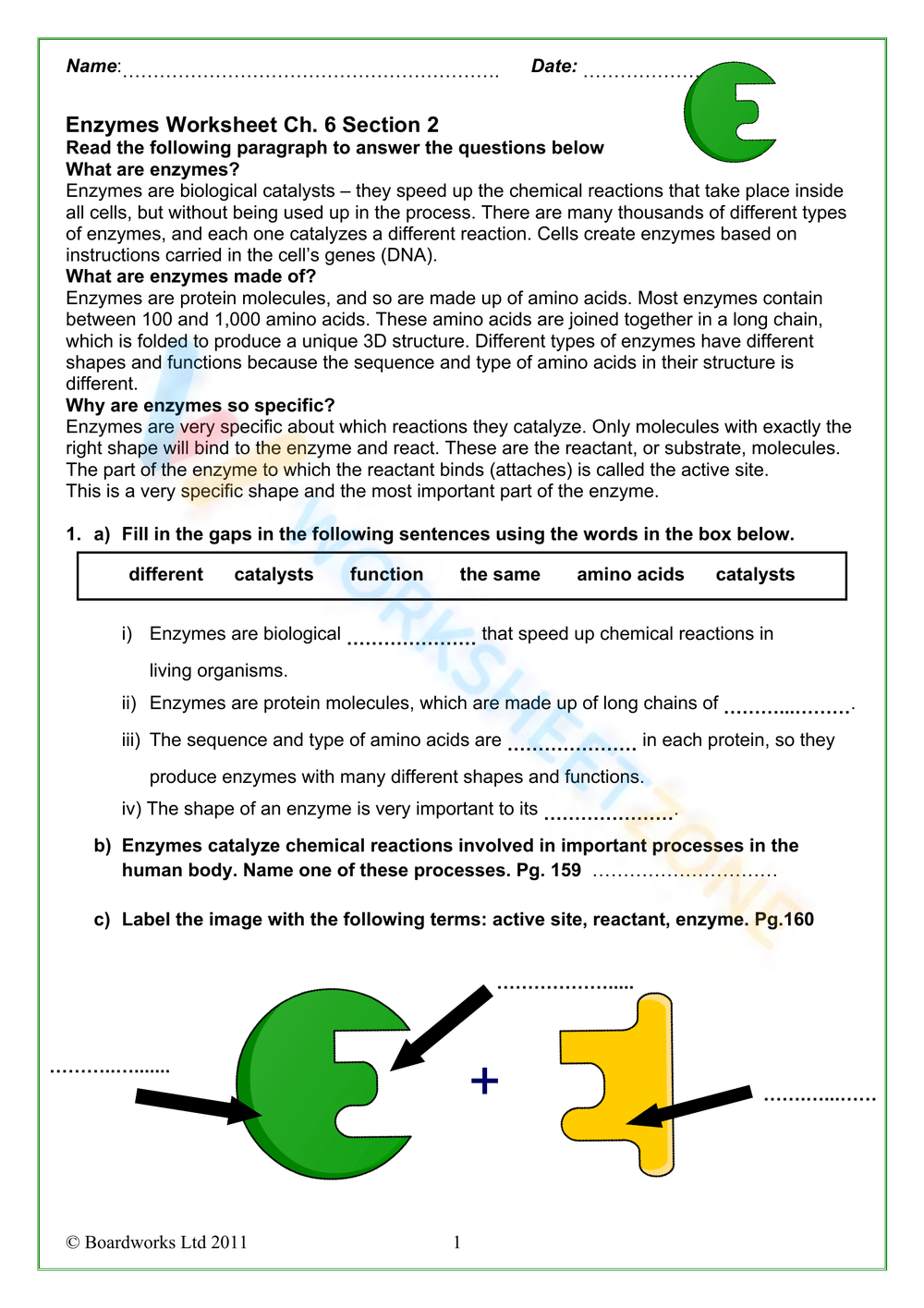 Whether you’re teaching a science class or just want to reinforce the importance of enzymes in everyday life, this worksheet is a great tool to have in your arsenal. From exploring the role of enzymes in digestion to understanding how they work at the molecular level, this worksheet covers it all.