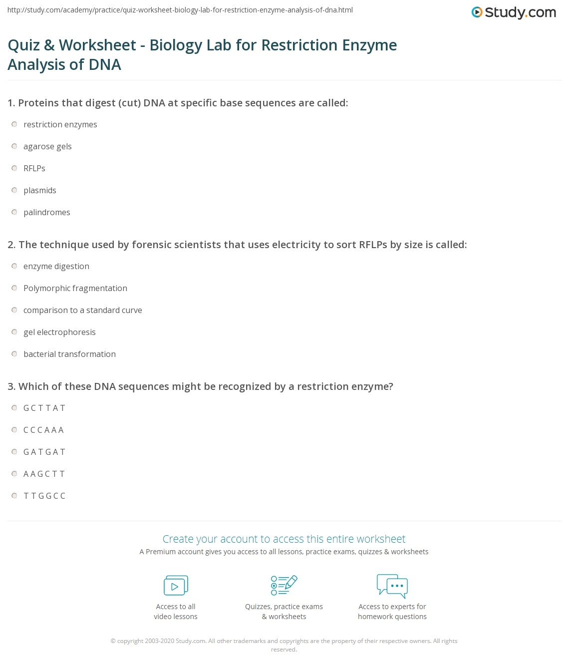 Quiz U0026 Worksheet Biology Lab For Restriction Enzyme Analysis Of Worksheets Library