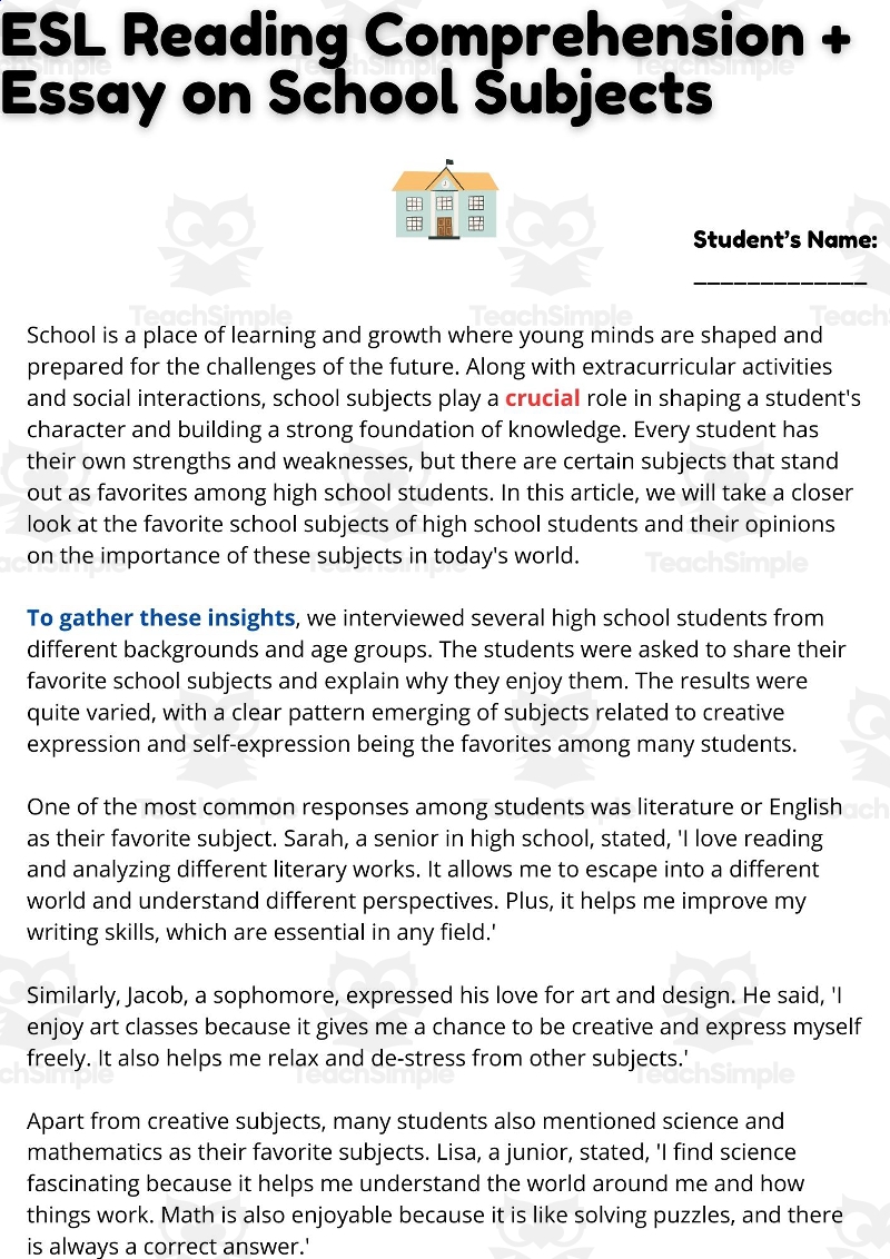 So why wait? Check out our selection of ESL reading comprehension worksheets for high school students today and take your students’ reading skills to the next level. Your students will thank you for it!